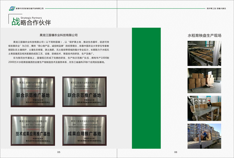 在與我司合作基礎上,國壤現(xiàn)已形成了完善的研發(fā)、生產(chǎn)和示范推廣隊伍,擁有年產(chǎn)1000到2000萬片水稻育苗基質(zhì)的全套生產(chǎn)線制造技術(shù)及服務體系,在東三省遍布20余個應用實驗基地。