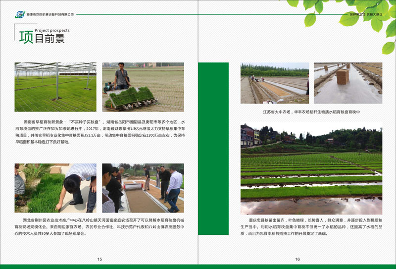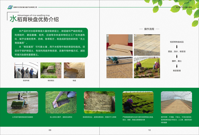 我司2012年應黑龍江某企業(yè)誠邀,開發(fā)出秸稈生物質(zhì)水稻環(huán)保育秧盤生產(chǎn)機器,經(jīng)過公司全員的努力,于2014年成功的攻克了生物質(zhì)環(huán)保育秧盆批量生產(chǎn)的機器及工藝難題,目前已經(jīng)在黑龍江地區(qū)持續(xù)銷售多條大小生物質(zhì)育秧盤生產(chǎn)線。在2018年,與中國農(nóng)業(yè)大學農(nóng)學院及黑龍江國壤農(nóng)業(yè)科技有限公司達成戰(zhàn)略合作關(guān)系,就水稻育秧盤項目進行更深一步的合作與研發(fā)。