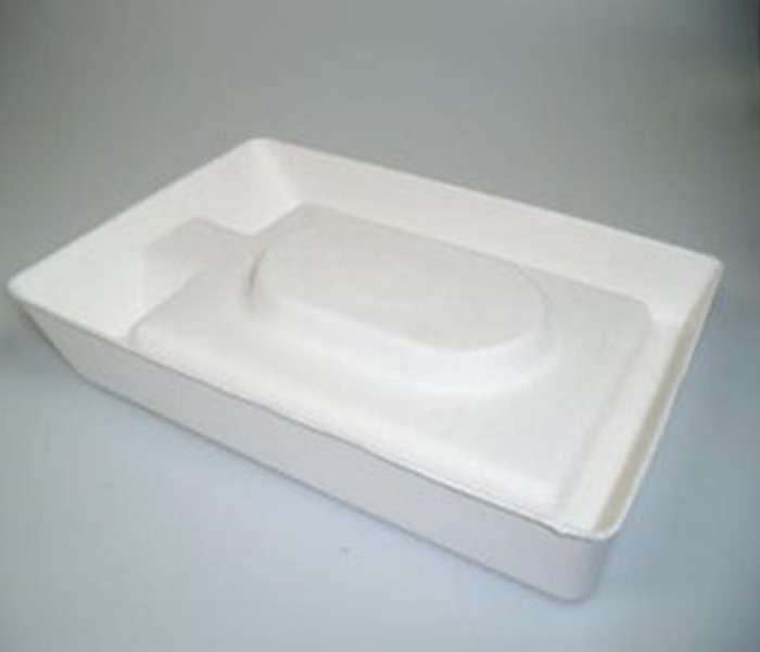 紙漿模塑制品是以紙箱邊角料、新聞紙、白色純木漿等為原料,經(jīng)過(guò)碎漿并調(diào)配成一定濃度的漿料,在特制的模具上經(jīng)真空吸附成型,再經(jīng)過(guò)干燥而成不同種類(lèi)和用途的內(nèi)襯體包裝制品。這種包裝制品,具有與包裝物外型相吻合的幾何形狀和良好的防震、防沖擊、防靜電、防腐保護(hù)效果,經(jīng)各項(xiàng)物理指標(biāo)測(cè)試,其性能和功效足以替代并優(yōu)于發(fā)泡致辭苯乙稀(EPS)、PS和PVC包裝制品,并且在防震功能、環(huán)保、價(jià)格及防靜電等指標(biāo)和功能上占據(jù)優(yōu)勢(shì)。廣泛適用于電子、家電、工業(yè)儀表、機(jī)械零部件、電工工具、電腦、家電、玻璃、陶瓷和農(nóng)產(chǎn)品等行業(yè)的內(nèi)襯包裝上。